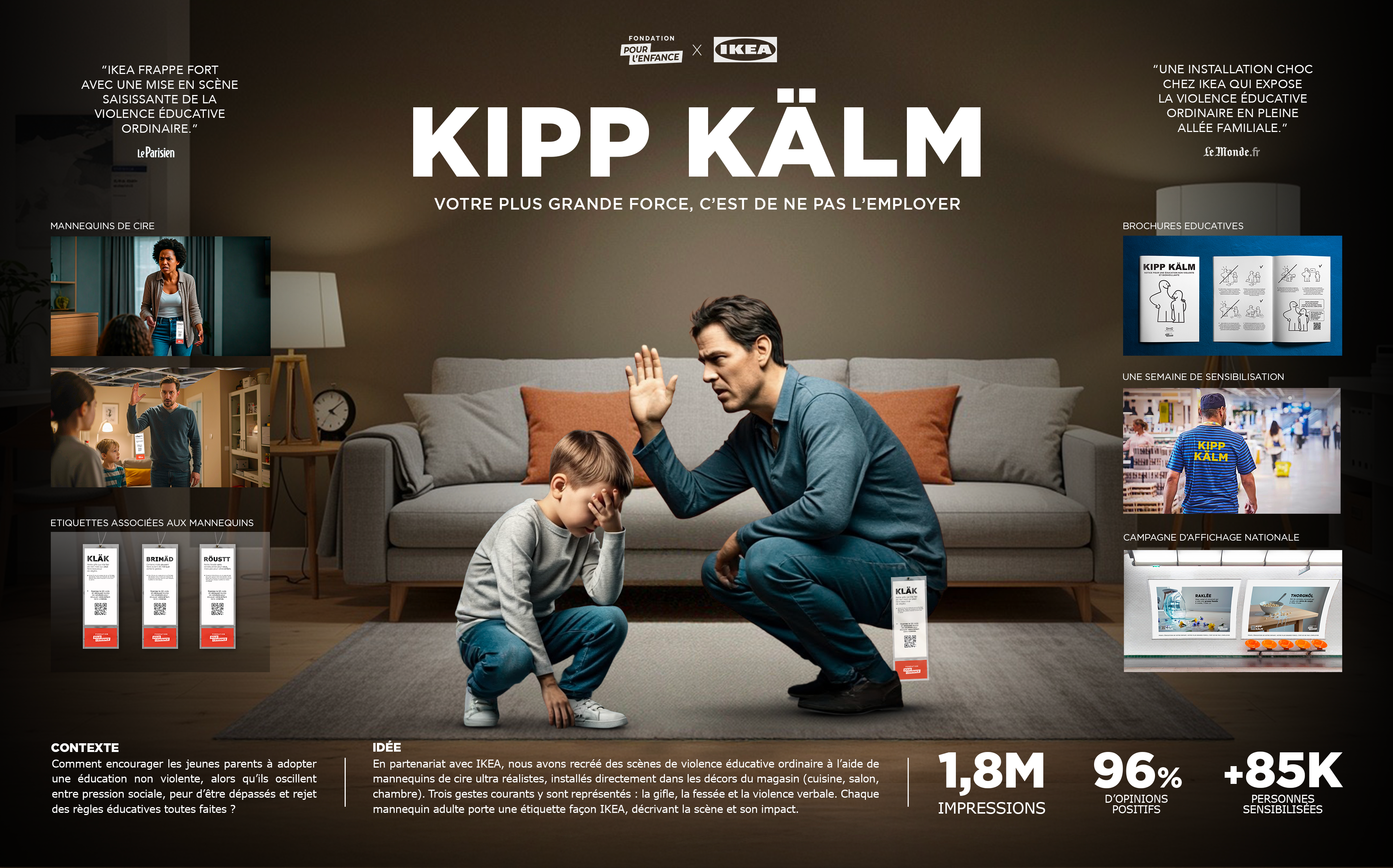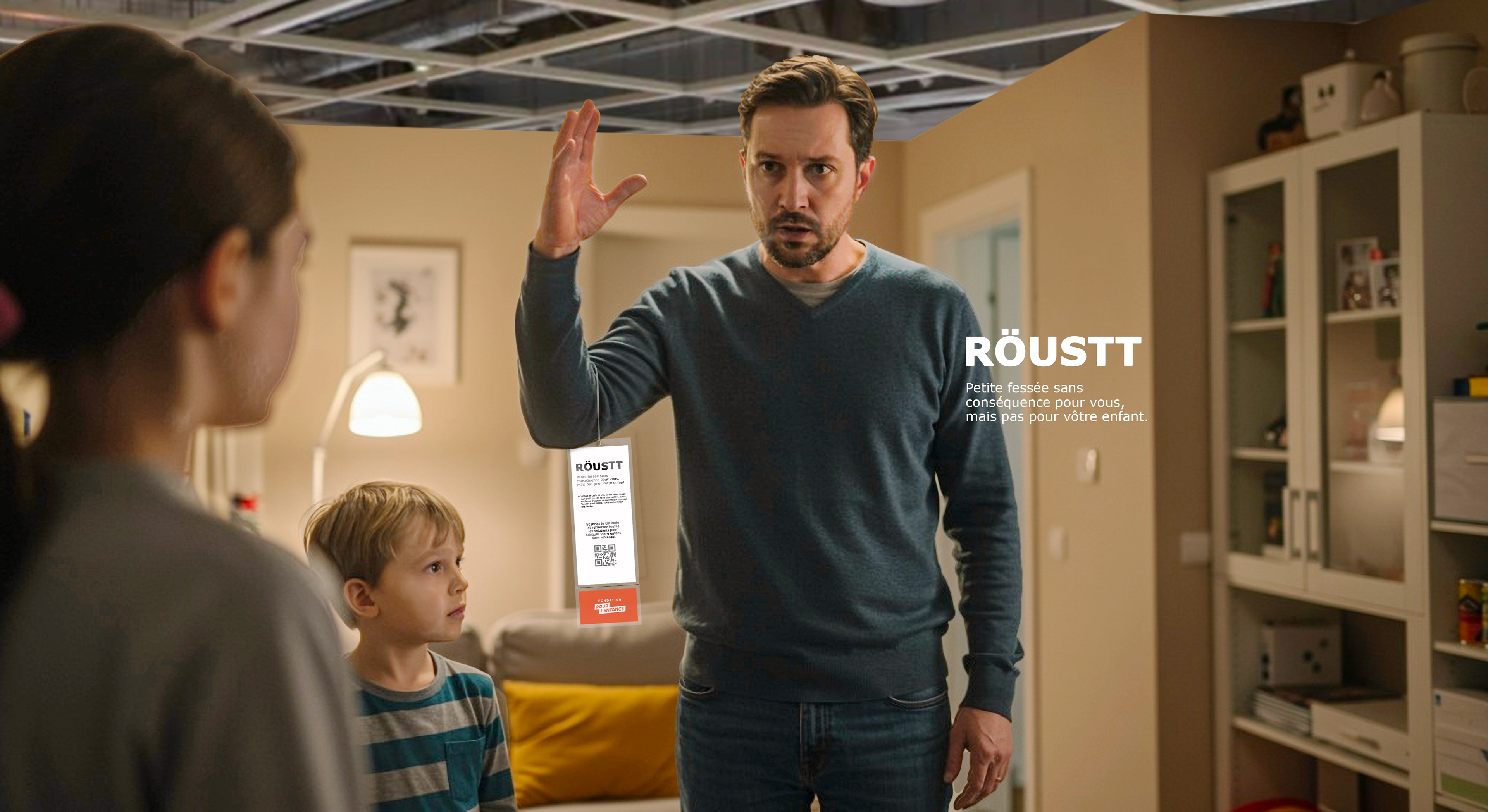 En partenariat avec IKEA, nous avons créé pour FONDATION POUR L'ENFANCE, une installation inédite percutante. Grâce à des mannequins de cire d'un réalisme saisissant placés dans les décors témoins de l’enseigne, nous avons recréé des moments de violence éducatives ordinaires pour interpeller les parents et les familles.