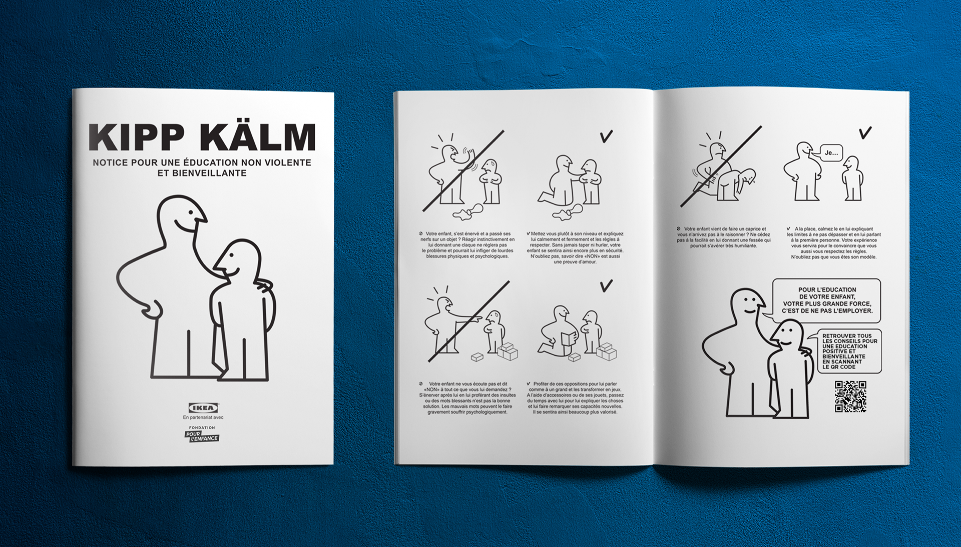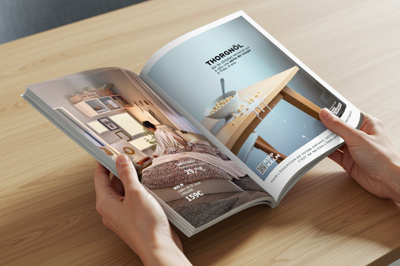 Pendant la durée de l'activation, les employés IKEA portent un T-Shirt Kipp Kälm, pour sensibiliser les visiteurs sur les violences éducatives ordinaires et soutenir l'association Fondation Pour l'Enfance.