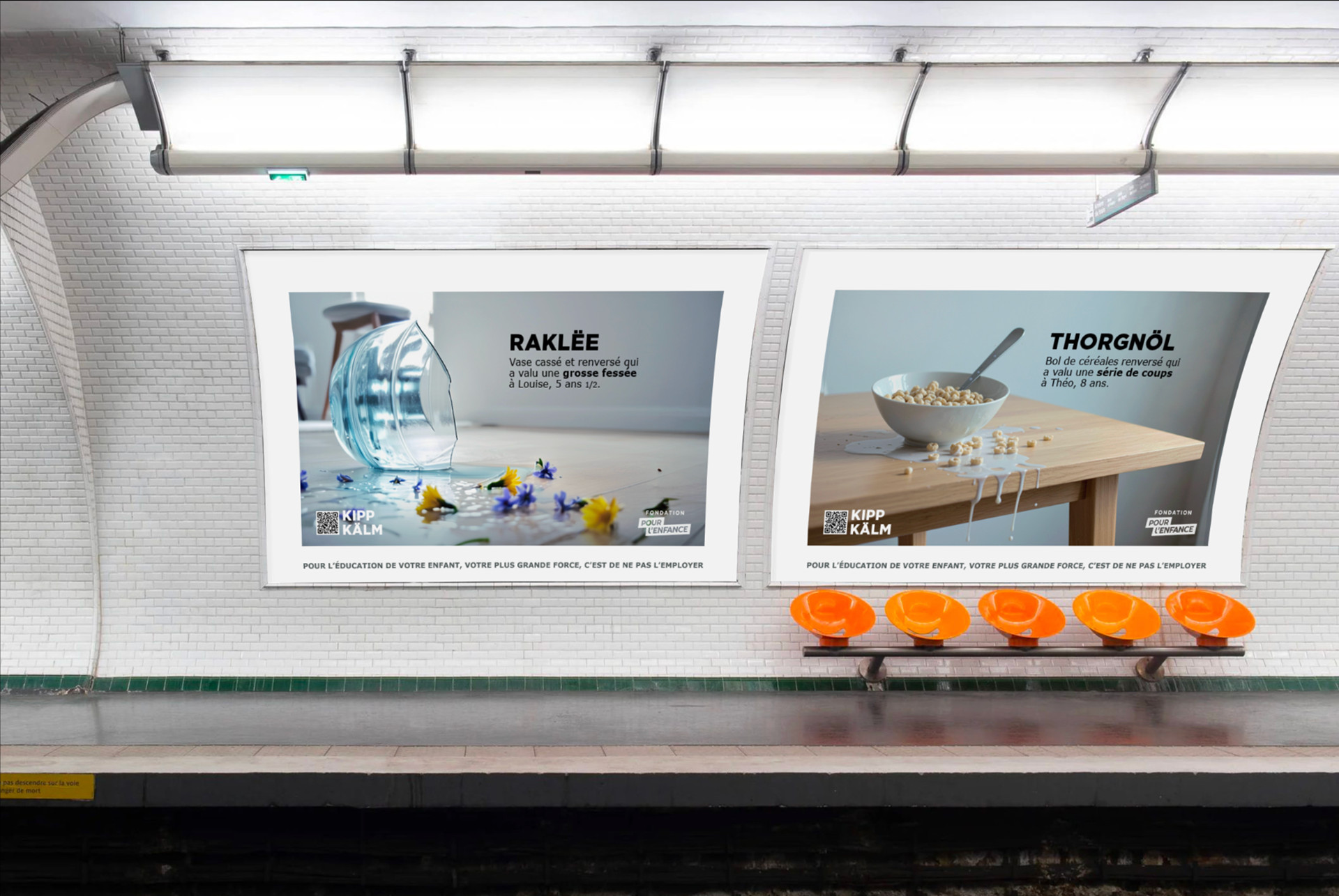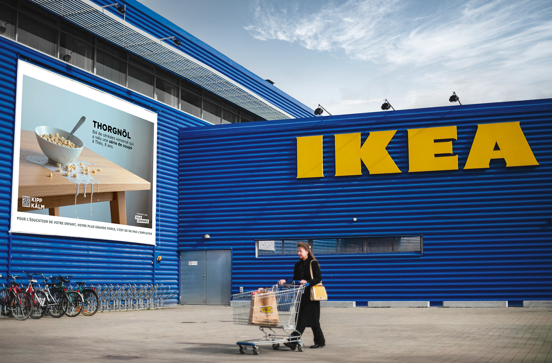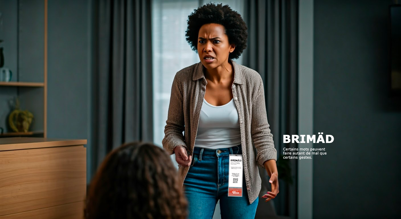Une campagne inspirée des codes visuels d’IKEA, où les noms de produits deviennent des jeux de mots percutants et dérangeants, pour pour illustrer ces moments du quotidien où les parents craquent et laissent place à des réactions violentes.